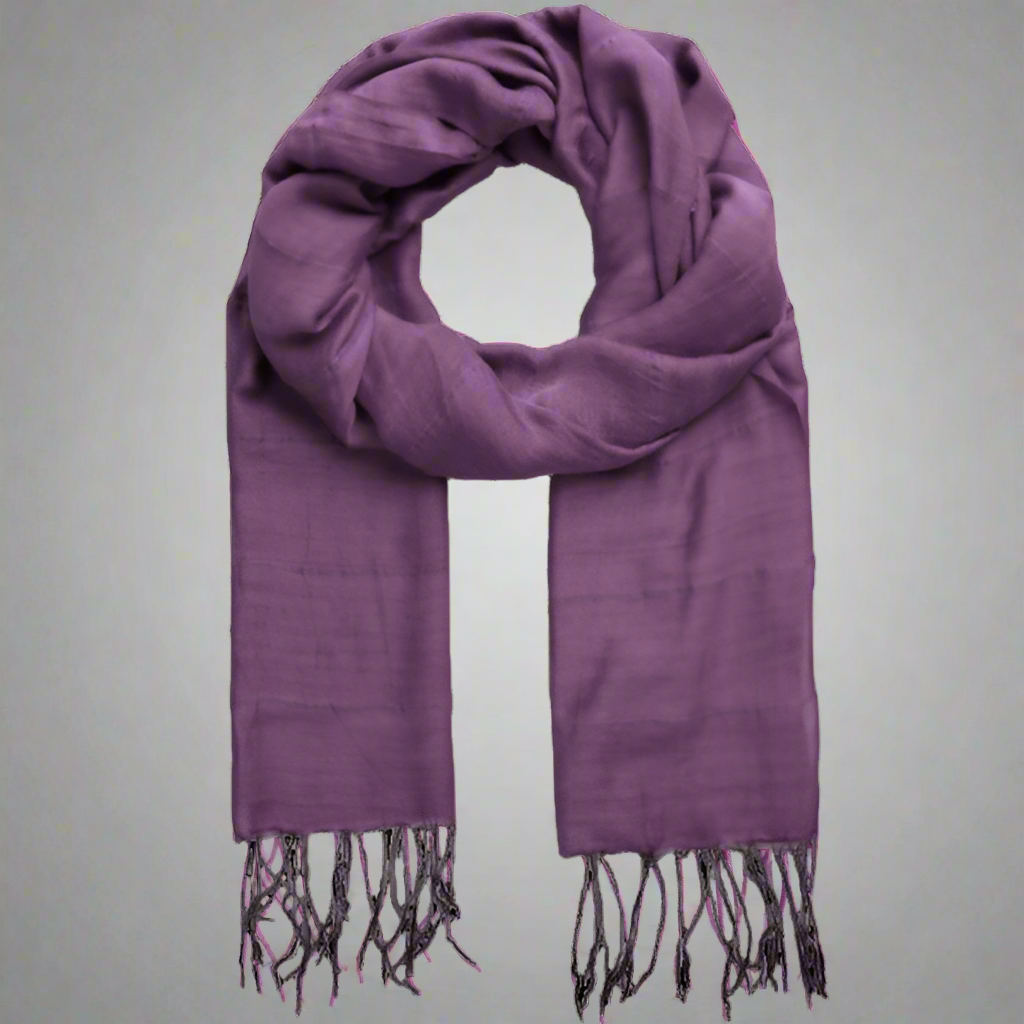 Our light as air Acai Silk and Linen Scarf is accented with a subtly woven stripe. This luxurious jewel-toned scarf glows with a soft sheen and is woven in a mix of silk and linen threads. It is perfect worn as a scarf through most of the year and wide enough to be used as a shawl on date night.