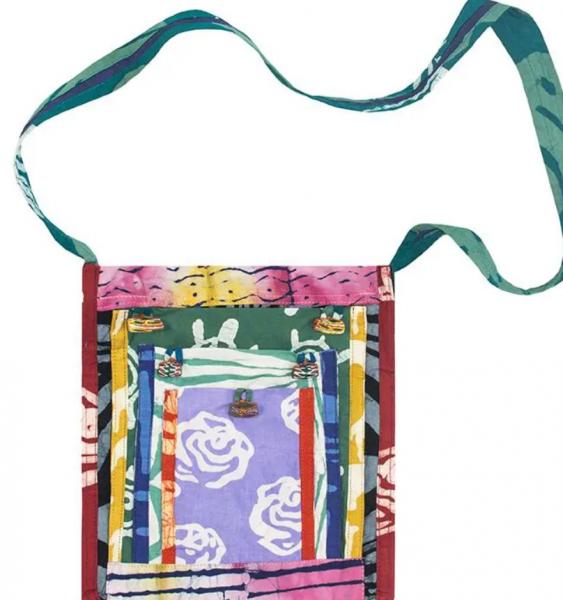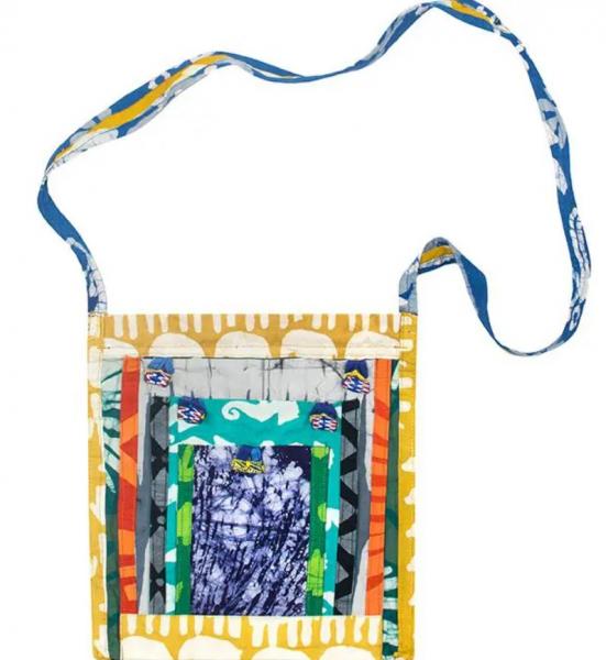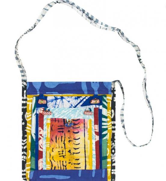 Handcrafted from upcycled batik organic cotton scraps, this eco-friendly patchwork bag seamlessly blends style and function. Perfect for a lunch date, a summer festival or travel, this bag is a wonderful addition to your accessory collection. The bag closes with a plastic zipper, and the three overlapping front pockets have loop closures over hand-made, hand-painted upcycled glass beads. Each bag is a one-of-a-kind piece - batik designs and colors will vary. Rear side of the bag is a single batik design. Please email us for photos of current stock.