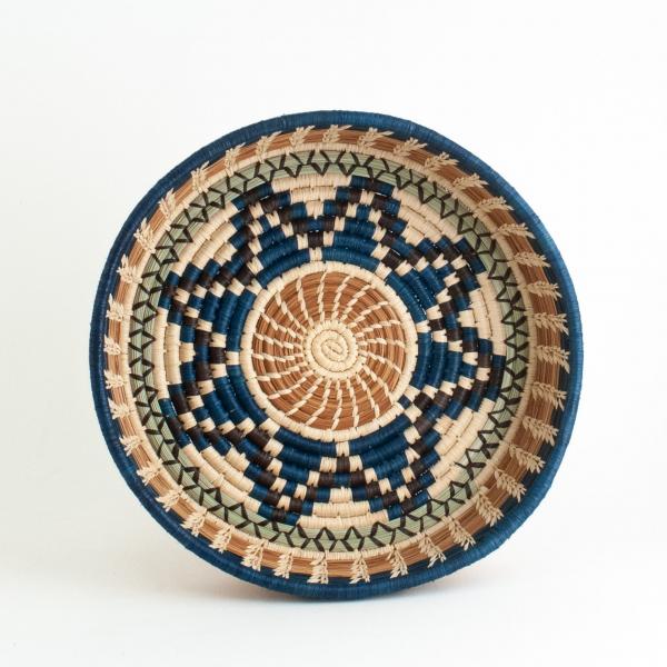 This handwoven basket has a stunning central star motif. It is handcrafted by women artisans from pine needles, dyed raffia and a native Guatemalan grass. Designed by the artisans, this statement basket is a wonderful display piece but is also meant to be practical and functional.