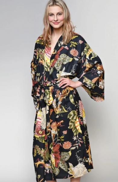 Our popular Black Floral Cotton Robe is wearable art, handcrafted from a 100% block-printed soft cotton fabric, showcasing a colorful floral print on a rich black background. These beautiful cotton robes feature large pockets and the fabric is printed using eco-friendly dyes. One size fits most.