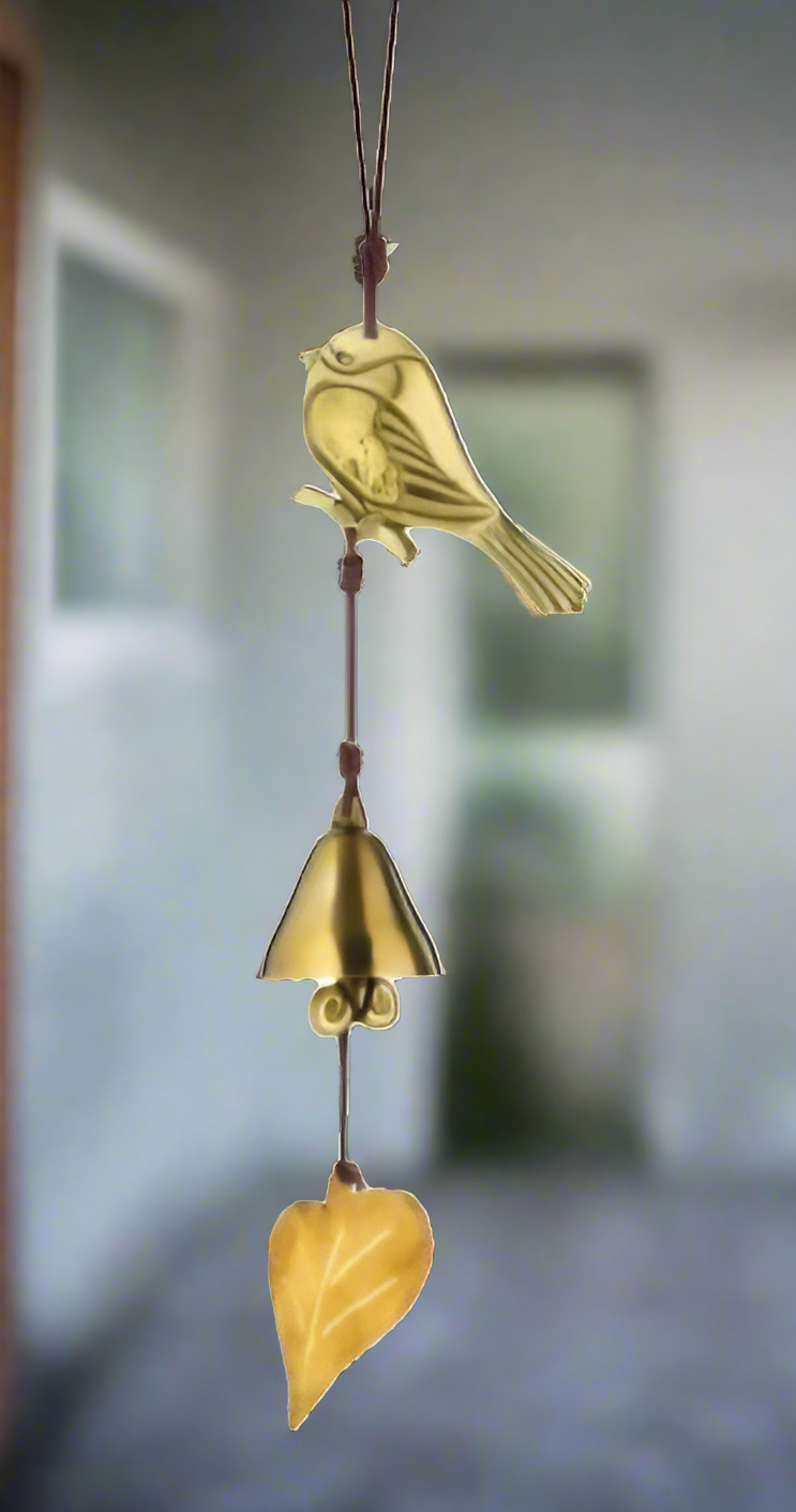 Our melodious Chickadee Chime will make a wonderful accent to your porch area. Handcrafted from solid brass by Tibetan and Indian artisans, each bell and element of the chime is individually sand-cast and meticulously hand-tuned to ensure clarity of sound and tone. Strung on a durable waxed cotton cord.