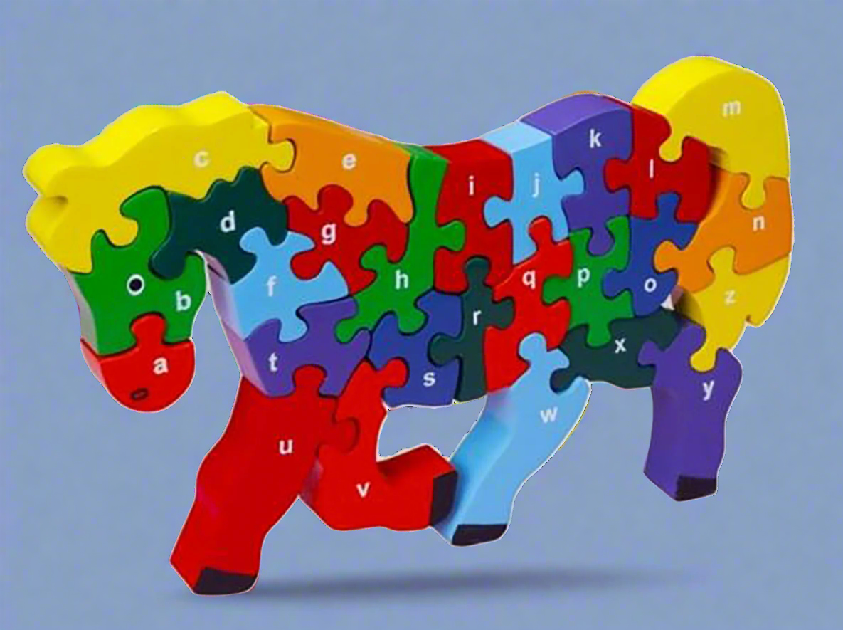Our wooden Horse Puzzle, handcrafted by artisans in a women's cooperative, is a delightful challenge for young minds. Your child will learn colors and letters as they piece the puzzle together, stimulating mental ability, fine motor skills, problem solving and imagination.