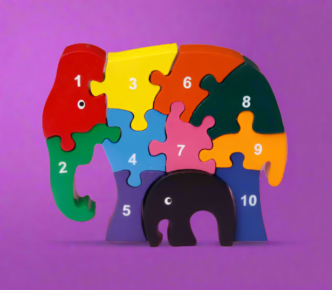 MAMA & BABY ELEPHANT PUZZLE - COLORS & NUMBERS