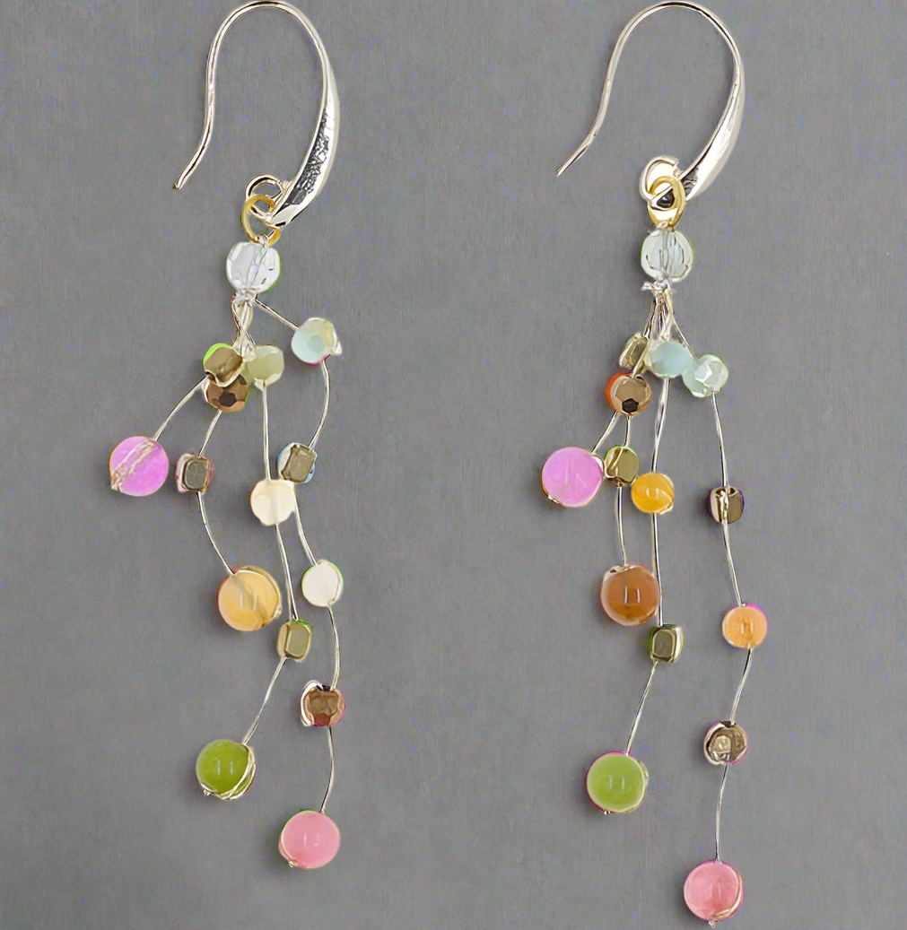 Our pretty Pinks Beaded Earrings have a subtle shimmer. These lightweight handcrafted earrings feature polished stone and crystal beads on metallic silk threads. Pair with our Pinks Floating Necklace or our Pinks Beaded Bracelet.