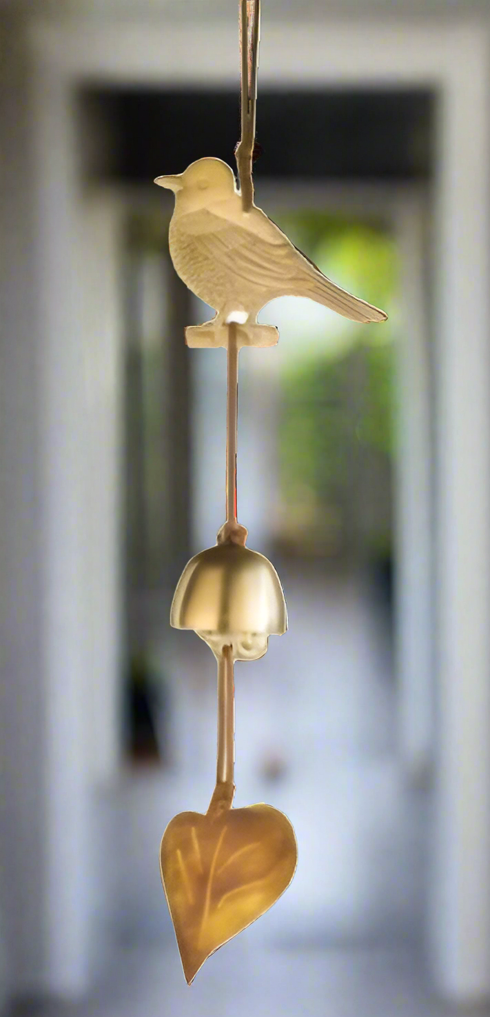 Our melodious brass Robin Chime will make a wonderful accent to your porch area. Handcrafted from solid brass by Tibetan and Indian artisans, each bell and element of the chime is individually sand-cast and meticulously hand-tuned to ensure clarity of sound and tone. Strung on a durable waxed cotton cord.