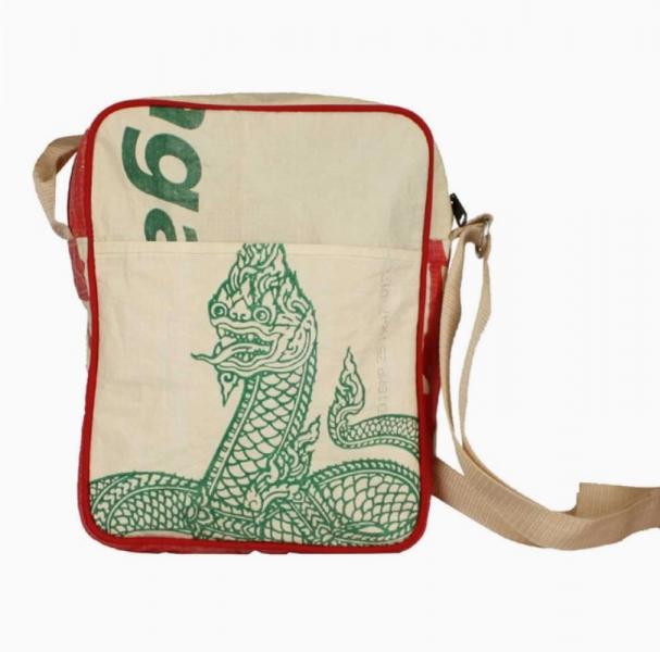 This handcrafted upcycled Serpent Cement Messenger Bag is a customer favorite. Handmade from recycled cement bags, these sturdy messenger bags are perfect for work, school and everyday. With an adjustable strap, and lined with a red cotton, this bag has six pockets for all your essentials - two outside front; one zippered back; one inside zippered and an inside phone pocket. The main compartment has a zipper closure with a flap cover.