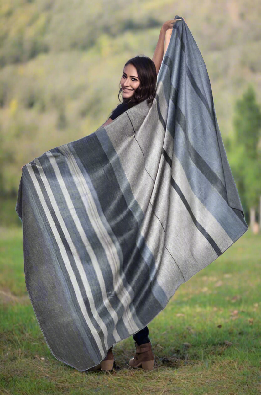 Our gorgeous Shadows Throw will add a sumptuous touch to your home. The sleek and sophisticated shades of gray and blue are a wonderful complement to modern furnishings. Both stylish and functional, the warmth and cashmere-like softness of this alpaca throw makes it the perfect piece to reach for on a chilly evening.