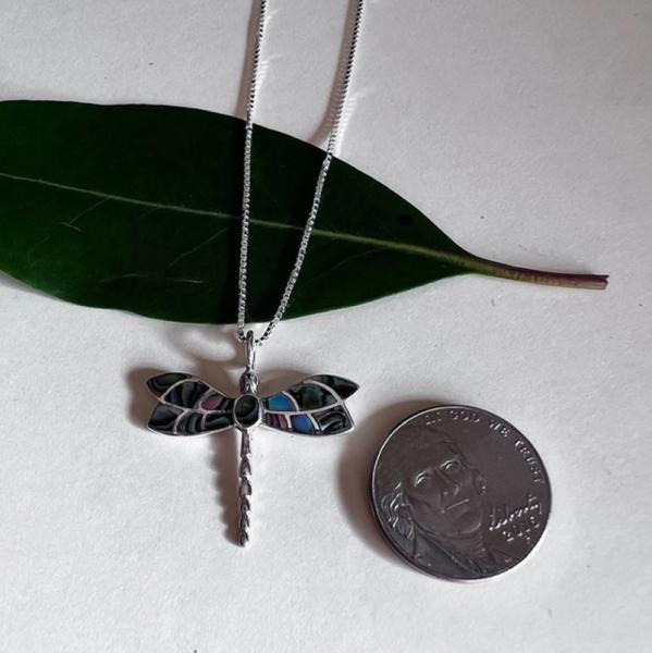 A recent addition to our sterling jewelry, this Sterling Abalone Dragonfly Necklace is sure to be a winner. Handcrafted by Balinese silversmiths, this pretty necklace a sterling silver dragonfly inlaid with abalone shell. A perfect gift for a dragonfly lovers.