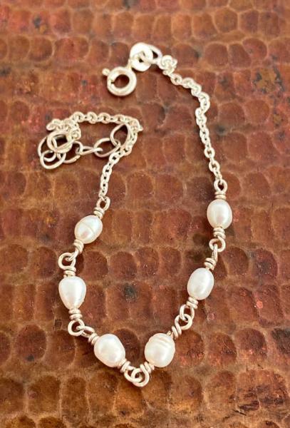 Our Sterling Freshwater Pearl Bracelet is gorgeous. Handcrafted by jewelry artisans in the Kathmandu Valley, this bracelet features a string of 6 freshwater pearls along a sterling silver chain.