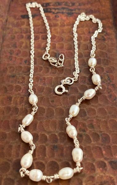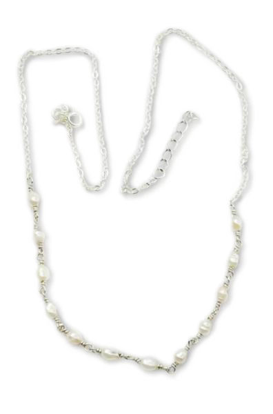 Our Sterling Freshwater Pearl Necklace is simply stunning. Handcrafted by jewelry artisans in the Kathmandu Valley, this necklace features a string of 12 freshwater pearls along a sterling silver chain.