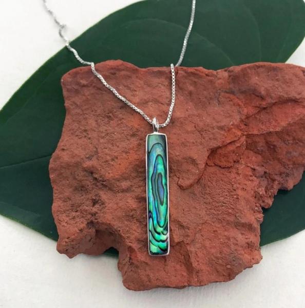 The simple design of our Abalone Bar Necklace is stunning. Handcrafted by silversmiths in Bali, it features an abalone bar-shaped pendant encased in sterling silver. Perfect to wear alone or layered with other necklaces.